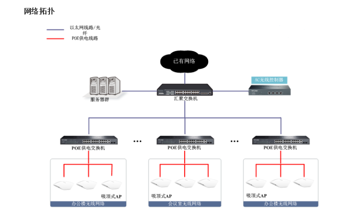 辦公職員通過無線網(wǎng)絡(luò)可以在辦公區(qū)內(nèi)隨時(shí)地接入企業(yè)內(nèi)部網(wǎng)絡(luò)和Internet,來完成各種業(yè)務(wù)工作的處理。另外WLAN網(wǎng)絡(luò)解決以往的有線端口接入限制、硬件維護(hù)工作繁瑣、線路多、可移動(dòng)性弱等問題,對(duì)企業(yè)網(wǎng)絡(luò)管理人員也是一個(gè)實(shí)質(zhì)性的變革。